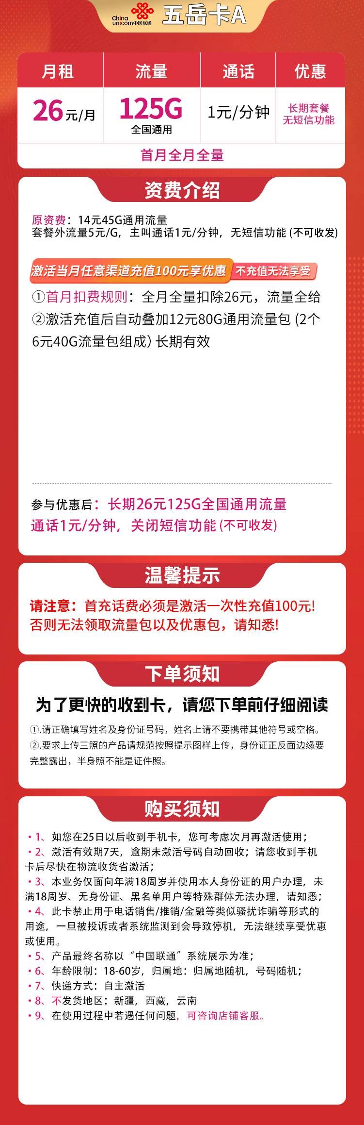 每月享:125G通用流量 + +