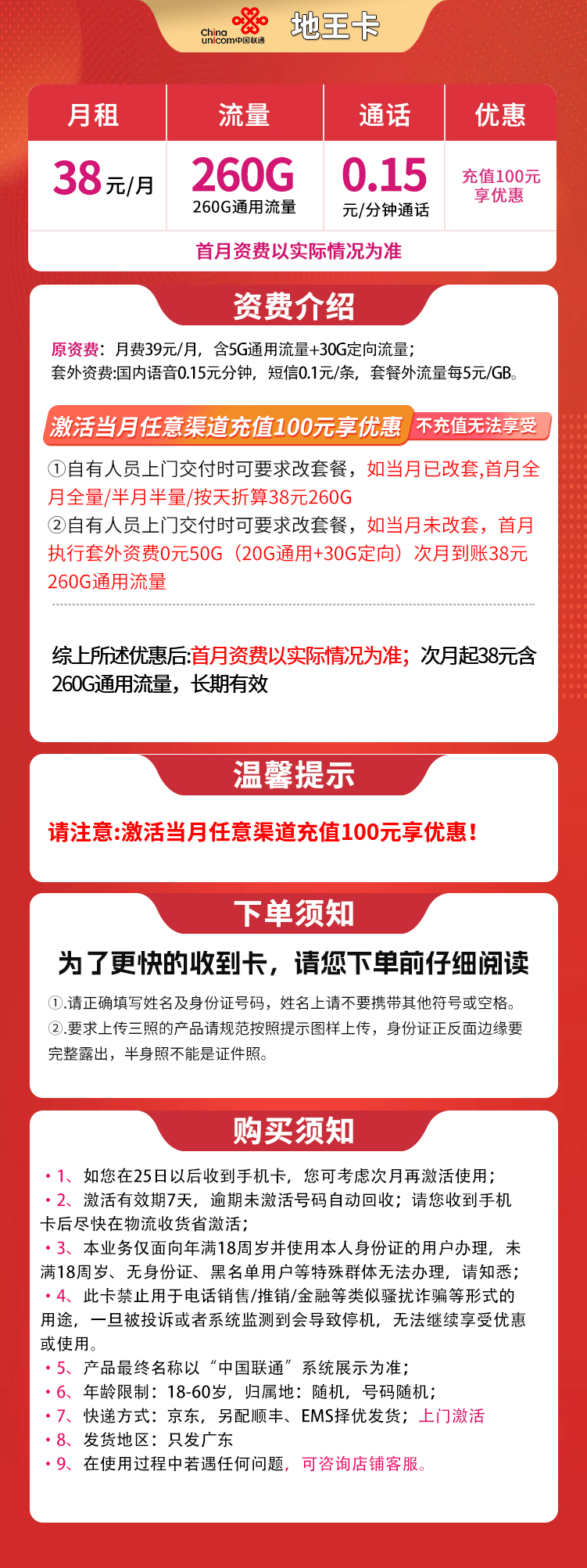 每月享:260G通用流量 + +