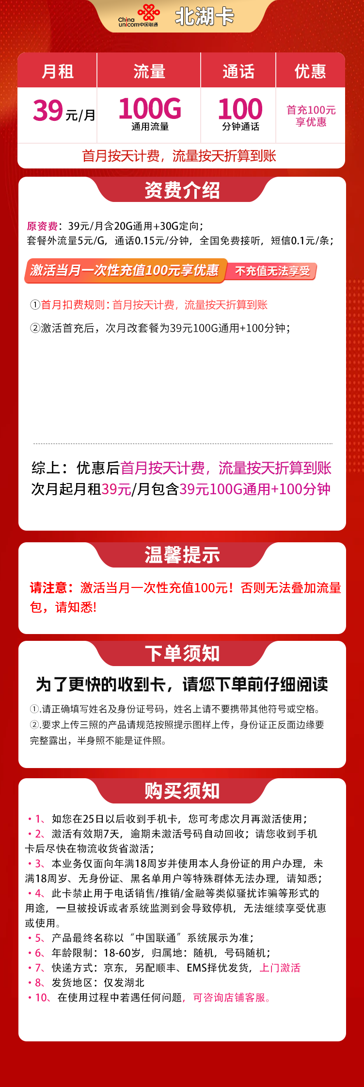 激活当月任意渠道一次性充值100元享受优惠